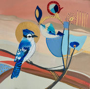 Making art is my passion, Nature and birds captivate me and I sketch or paint birds almost every day; often inserting a bird into my abstract paintings. Recently I have been exploring the addition of fabric and ceramic hearts in the bird paintings. Text me for availability and price.